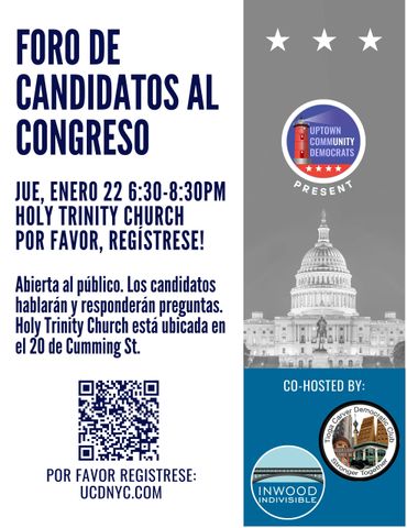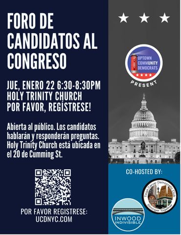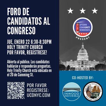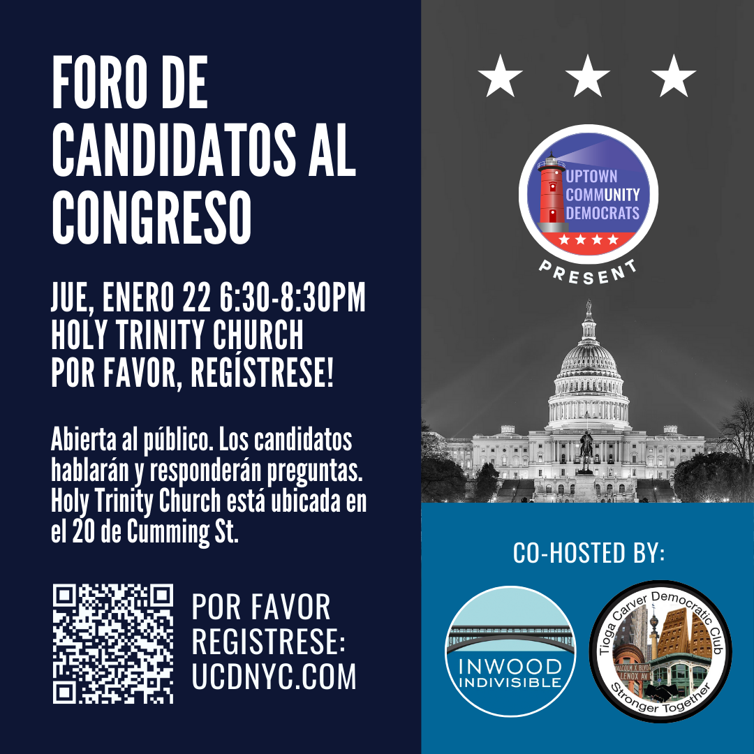 Gracias a Inwood Indivisible y al Tioga Carver Democratic Club por coorganizar este evento junto a Uptown Community Democrats.