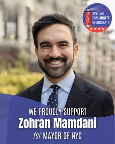 Uptown Community Democrats proudly endorses Zohran Mamdani for Mayor of New York City. Zohran won our endorsement by a mile! Our membership has been out on the streets campaigning for Zohran and have been sharing why we are proudly supporting Zohran Mamdani!