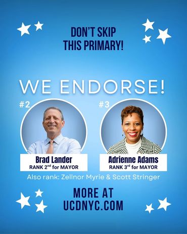UCD also supports Bad Lander for 2nd choice, Adrienne Adams for 3rd choice. We also recommend ranking Zellnor Myrie & Scott Stringer. Rank five candidates for Mayor, but don’t rank Cuomo. More about Uptown Community Democrats and our entire slate: UCDnyc.com