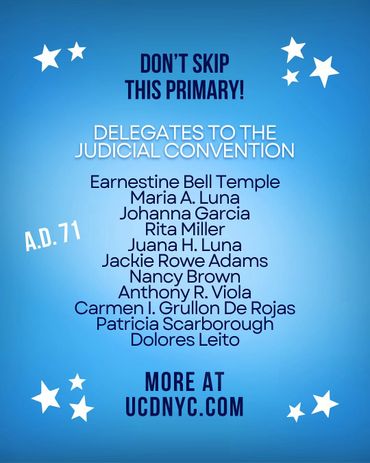 ★ Vote for our local Judicial and Alternate Judicial Delegates, FLIP YOUR BALLOT and ensure we elect Manhattan judges with Democratic values.