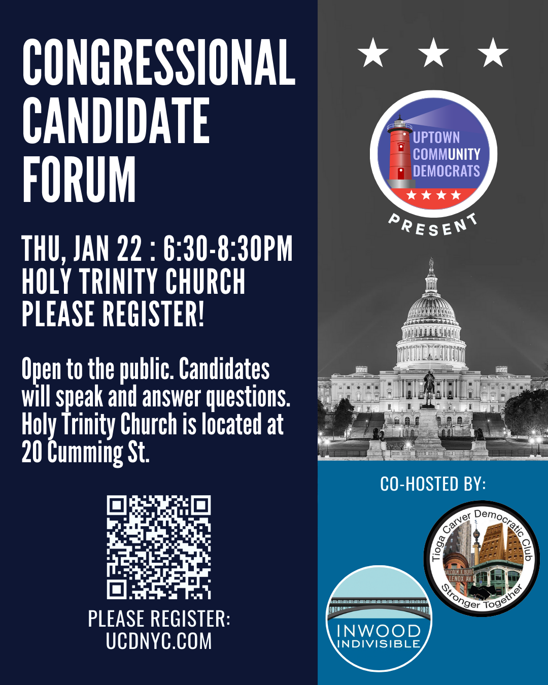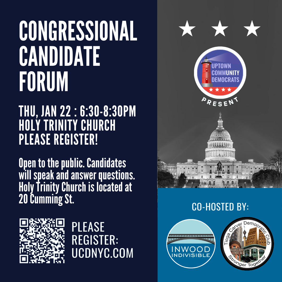 Thank you to Inwood Indivisible & Tioga Carver Democratic Club for co-hosting this event with Uptown Community Democrats.